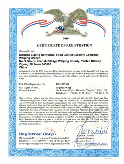 美國(guó)Fda權(quán)威認(rèn)證 風(fēng)升商貿(mào)有限公司代理品牌百味齋在2004年便通過(guò)了美國(guó)“FDA”認(rèn)證