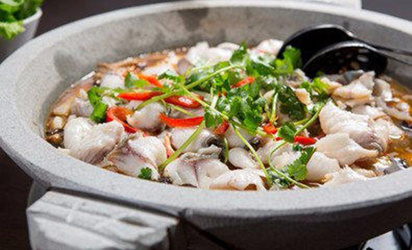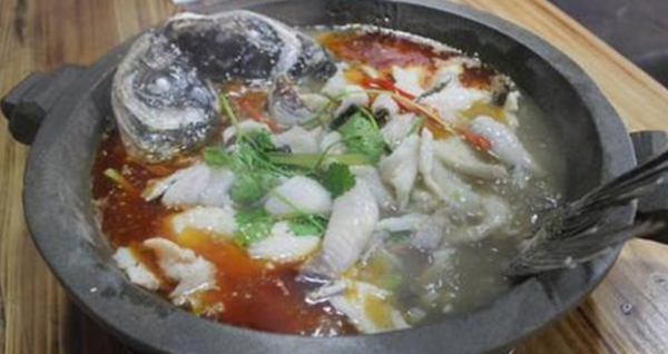 石鍋魚也叫金福魚,是湘菜中的一道名菜,制作方法獨(dú)特,用一塊大的花崗巖巖石鑿成有雙耳的石鍋,將魚放在石鍋內(nèi)烹煎,然后,再加上以辣椒為主的各式佐料,又再加上一些滋補(bǔ)藥材制成。